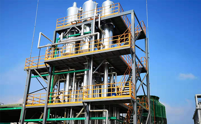 三效蒸發器主要由相互串聯的三組蒸發器、冷凝器 、鹽分離器和輔助設備等組成 。